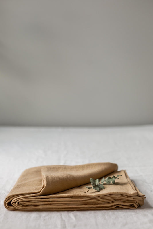 Linen flat sheet in Mustard